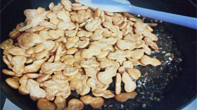 4. 再倒入剪好的棉花糖,小火融化,融化好后关火
