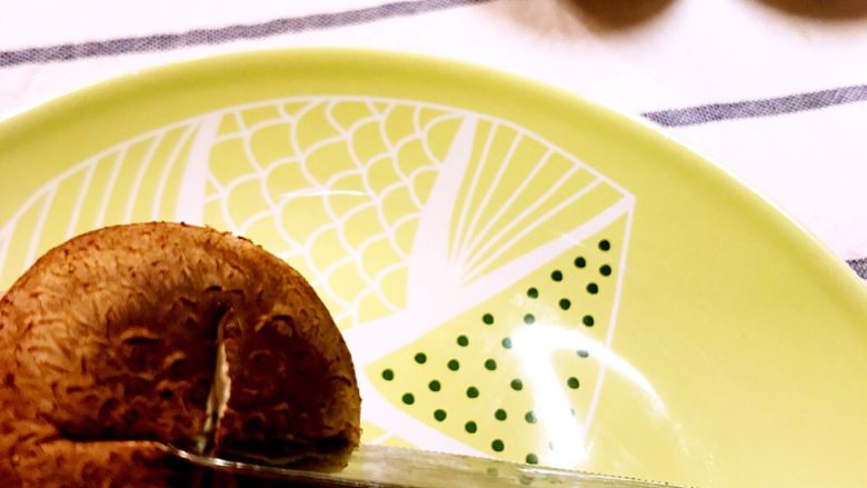 11. 取适量香菇用餐刀在菌盖上划十字花。