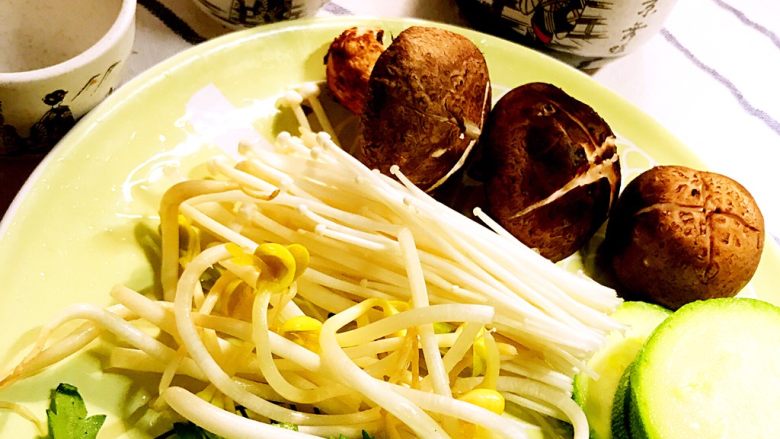 35. 金针菇、茼蒿和角瓜等菜品,新鲜适口。