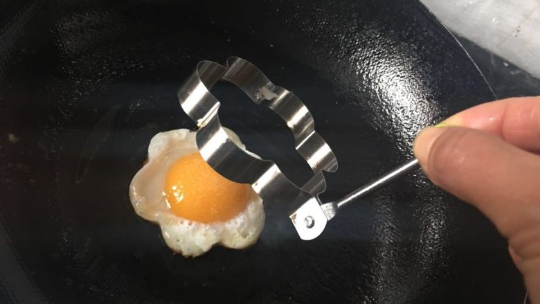 4. 煎蛋成型后,拿掉磨具,轻轻翻身;