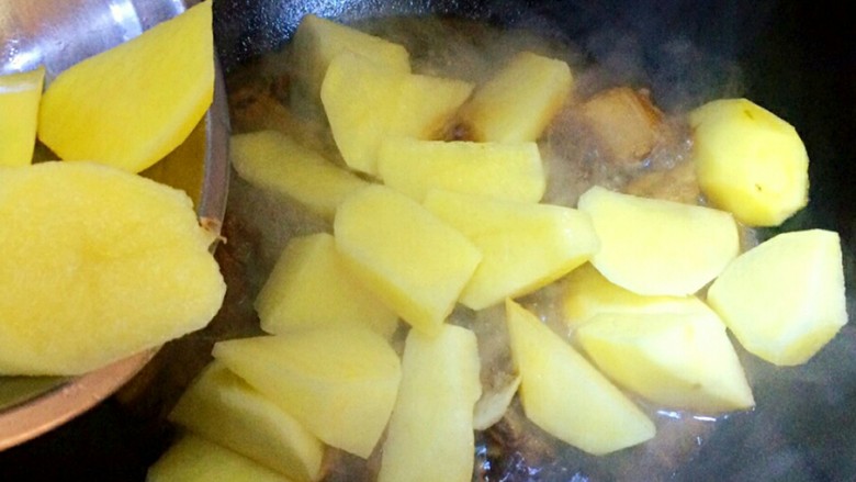 11. 鸭肉炖30分钟左右,加入土豆继续炖