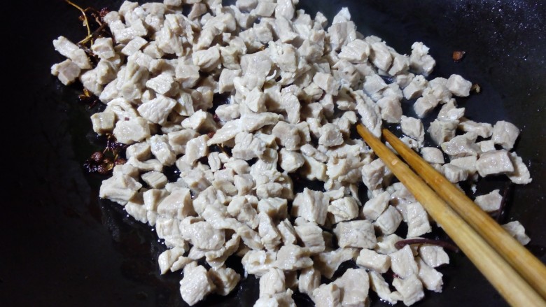 13. 锅里放油,烧至温热,放入花椒粒小火炒香。也可以放入一些八角或者茴香粒一起炒。然后可以把这些调料捞出来。