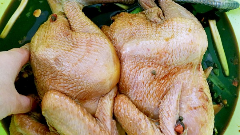 15. 半天的时间把鸡换一面,再做全身按摩,然后继续放置一边,腌制两天左右