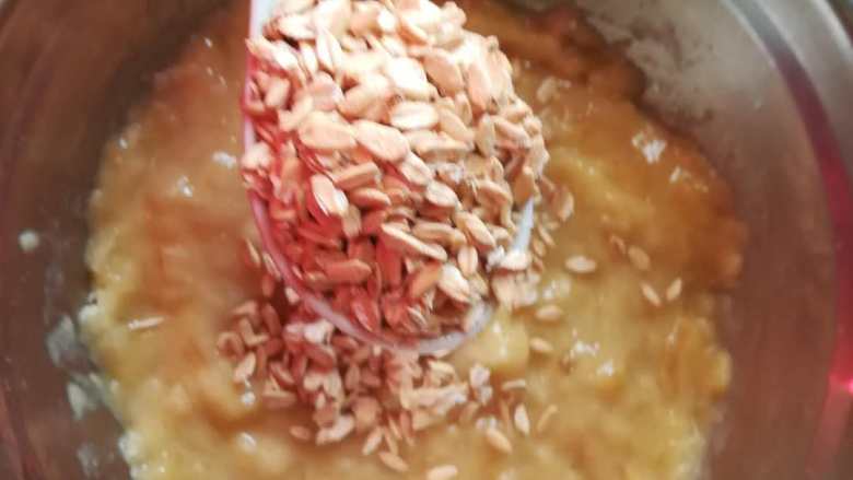 6. 加入燕麦片,也可以加少量的面粉或玉米淀粉,我都试过,都成功了。 注意,只能是20克左右,太多了,影响口感。