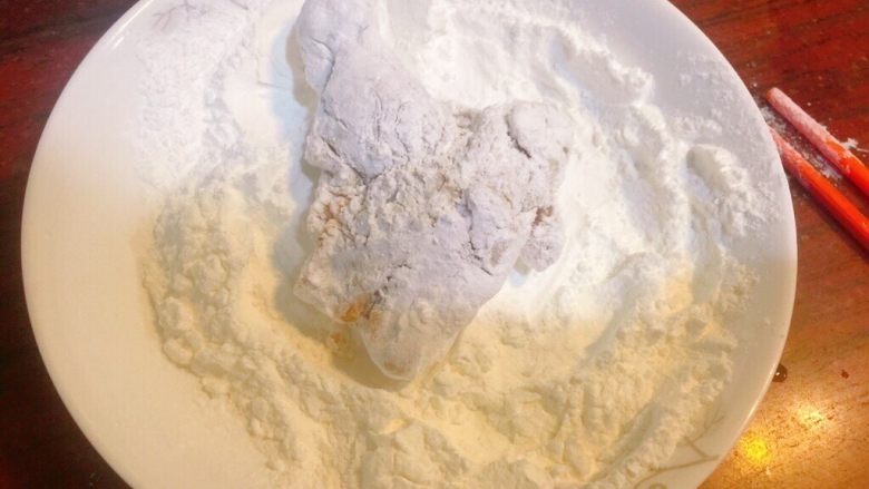 11. 最后粘一层炸粉。依次做好鸡翅根。