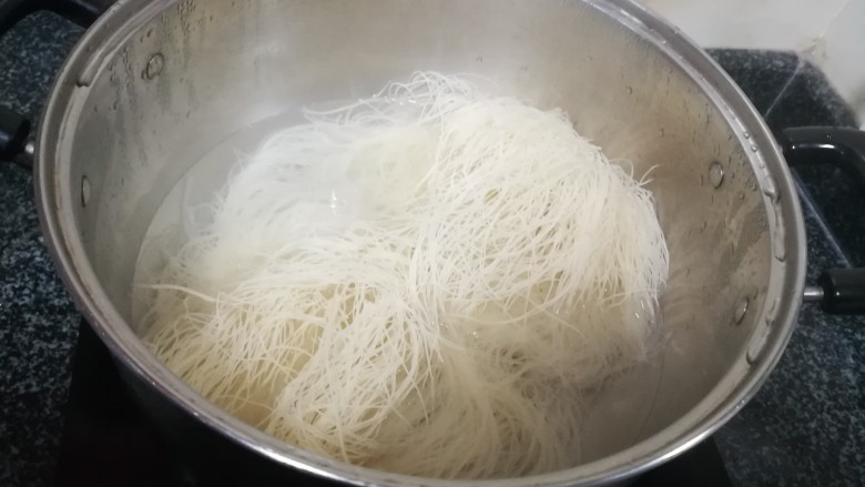 6. 放下洗过的米粉,轻轻汆水一下。