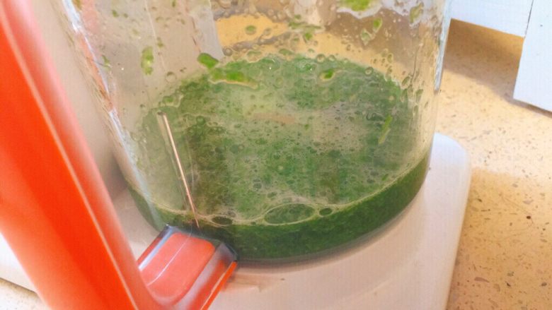 3. 这同时,把小白菜洗净,先切大段,然后放进辅食机里打碎。这种辅食机打碎的过程中,需要加一些水哦。