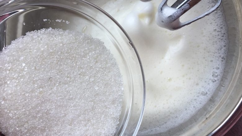 2. 蛋清蛋黄分离,蛋清滴入几滴柠檬汁