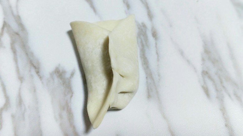 14. 把一端捏起来,如图,之后再把另一端捏起来,一定要捏紧,这样饺子包好了。