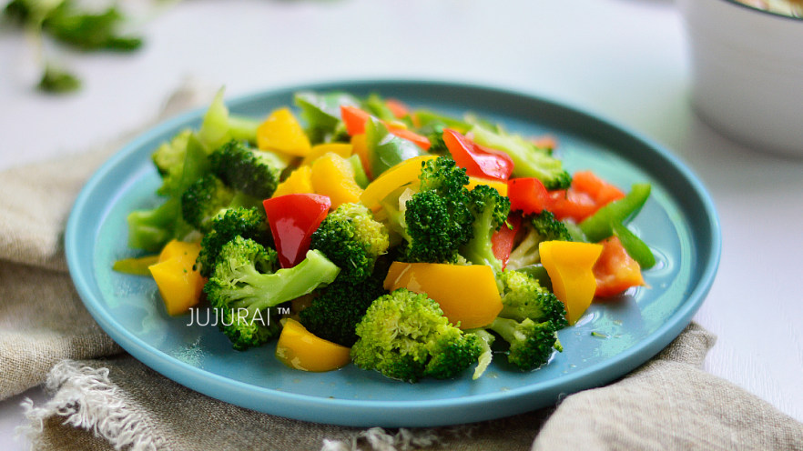 西兰花营养丰富,含蛋白质、糖、脂肪、维生素和胡萝卜素,营养成份位居同类蔬菜之首,被誉为“蔬菜皇冠”~它味道清香,口感爽脆,加些维生素丰富的彩椒,就是一盘养眼又营养美味的快手小炒哦~
