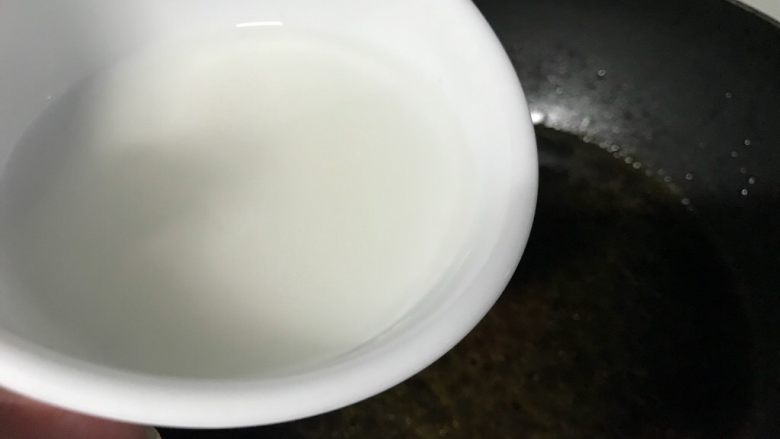 17. 刚刚烀肘子的汤,倒入锅里加热,加入一汤匙汤,勾芡。