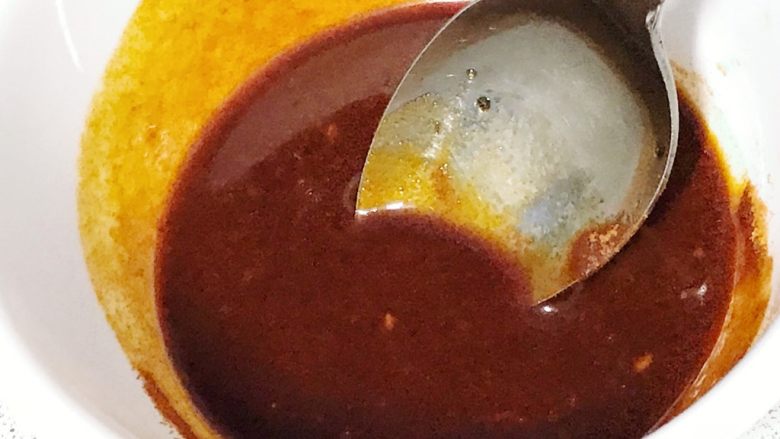 17. 红辣椒粉,加入两汤匙的热油,搅拌成红油。