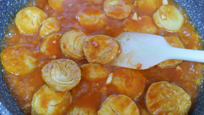 12. 倒入煎好的素鸡,翻炒至汤汁浓稠