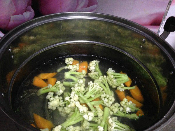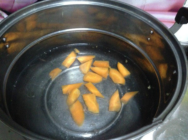 6. 锅内加水烧开下入胡萝卜煮一分钟
