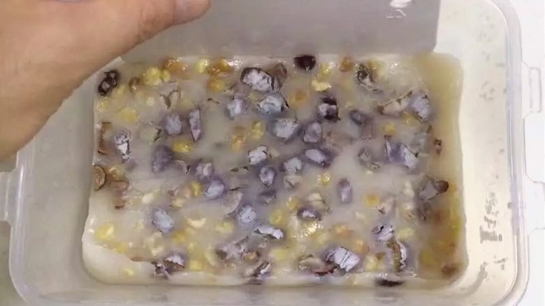 9. 把搅拌好的糯米糊倒入保鲜盒内。