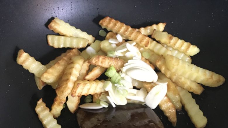 8. 油烧热下土豆条半煎半炸