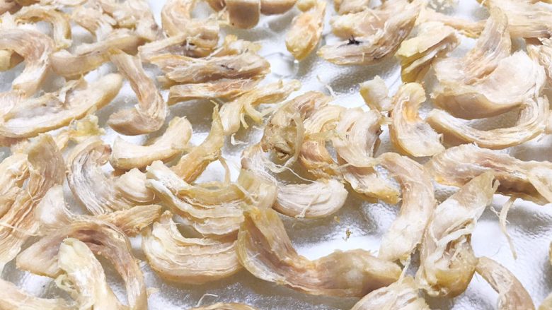 4. 煮熟的鸡胸肉晾凉后用手顺着鸡肉纤维的方向撕开,约小拇指粗细