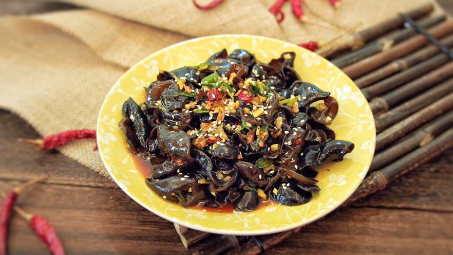 11. 将装有木耳的碗中调味:2勺醋,1勺生抽,半勺蚝油,些许盐,些许鸡精,再将以上切好的佐料码放在木耳上,锅里烧油,油热浇在佐料上,随即将所有食材搅拌均匀,最后撒上芝麻和淋上芝麻油即可 (此张图片仅展示浇热油,非此菜谱,拌木耳时忘记拍了)