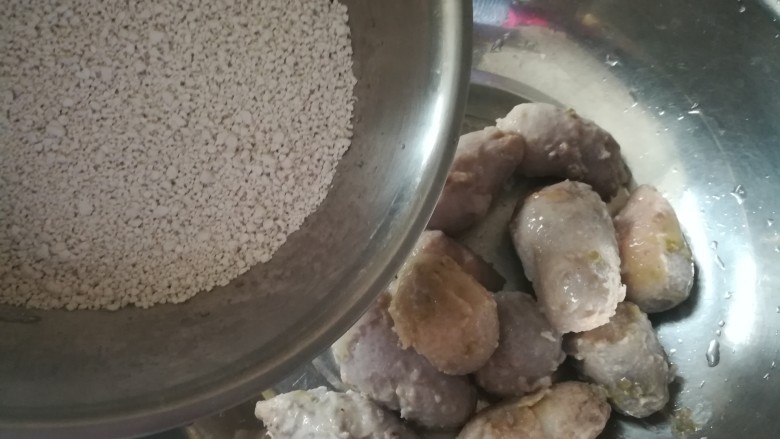 16. 把圆溜溜的剂子,在糯米里滚来滚去直到浑身沾满糯米。