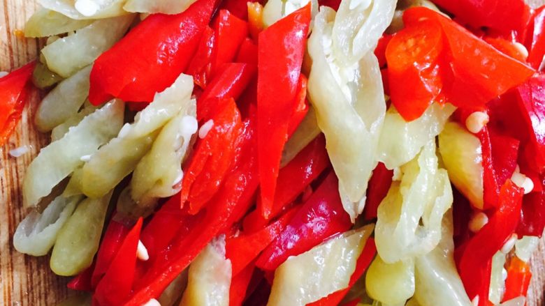 11. 放入小米泡椒和泡红辣椒一起煸炒出香味