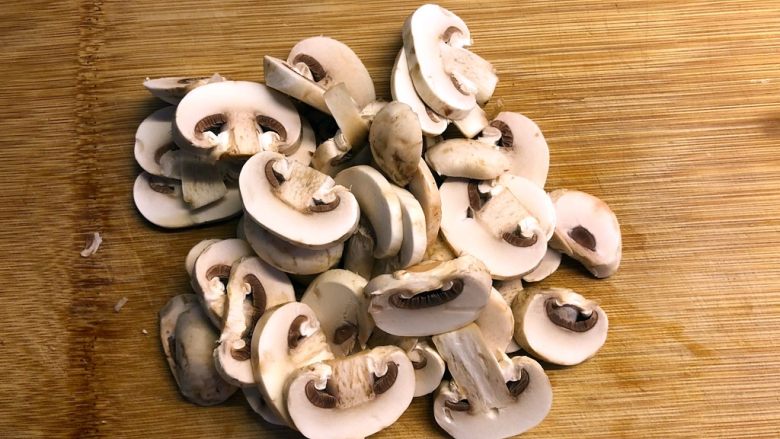 7. 热锅下油,加入口菇翻炒。 用黄油的话会更香哦。