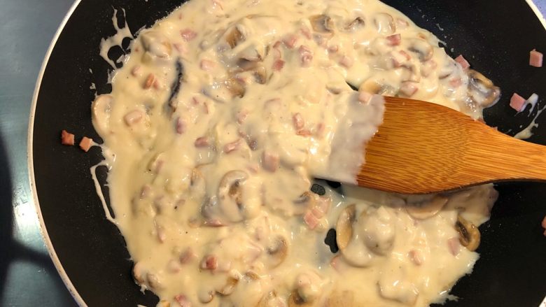 只要做好了奶油白汁,这款意面就非常简单了。超级好吃,连碟子都要舔干净😋