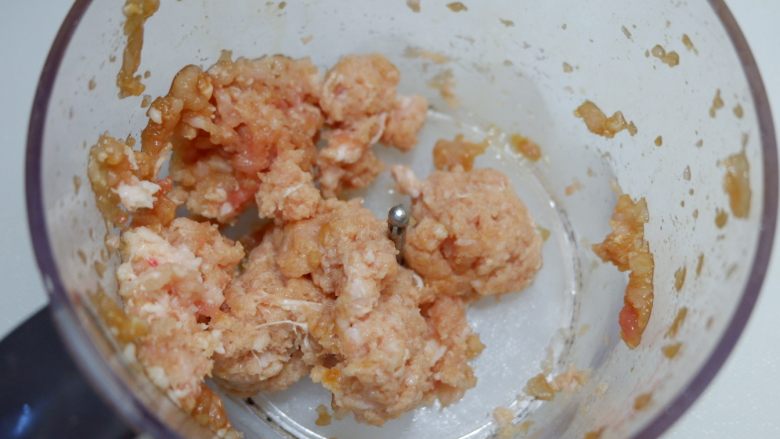 7. 一起混合打成肉末,静置15分钟。(嗯,我就是这么懒,这样就省的搅拌了,一下就全部融合了)