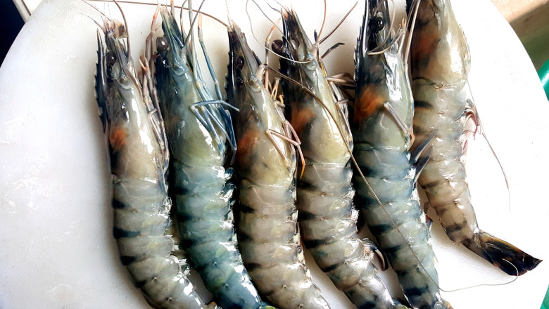 1. 准备黑虎虾数只。