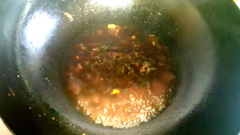 19. 待水快要收干时,放入葱花。