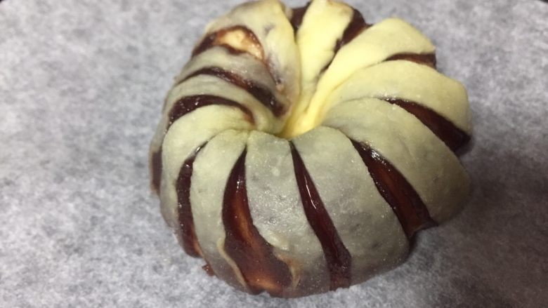 16. 面包胚发酵至两倍大时,烤箱中层,上下火150度,时间18分钟,上色满意后加锡纸遮住烤