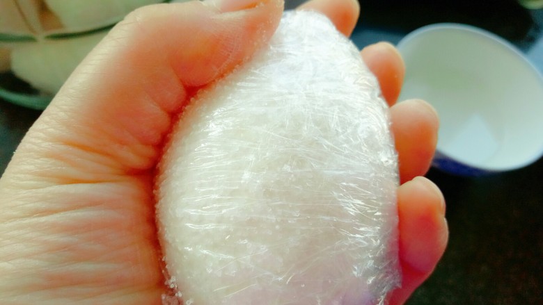 9. 用手握紧保鲜膜(动作要轻)