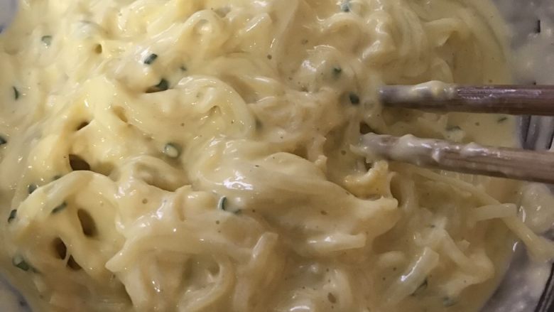 3. 腌制过的萝卜丝挤出水份(不用挤得太干,太干油炸之后口感会差一点)