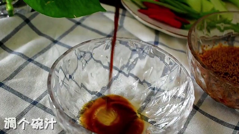 6. 然后将做好的油泼辣子放进去一两勺 搅拌均匀
