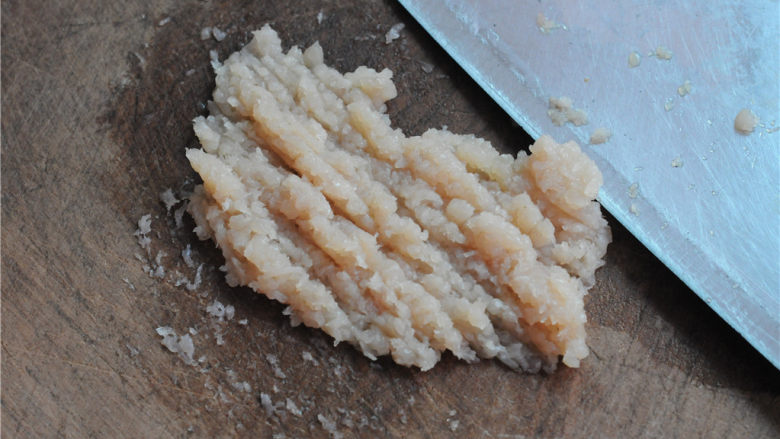 7. 放入鸡肉泥,煮至肉泥变色后将西兰花加进去,将西兰花煮熟