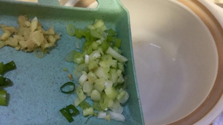 3. 小葱分葱白葱绿分别切末,生姜切末备用