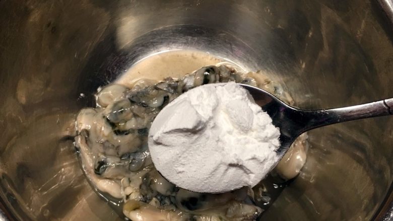 4. 海蛎淘洗干净,用沥网沥干水分。