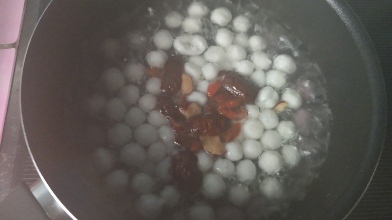 紫色的,白色的汤圆,像一颗颗珍珠,放了甜米酒和红枣枸杞,香香甜甜还美容养颜呢。