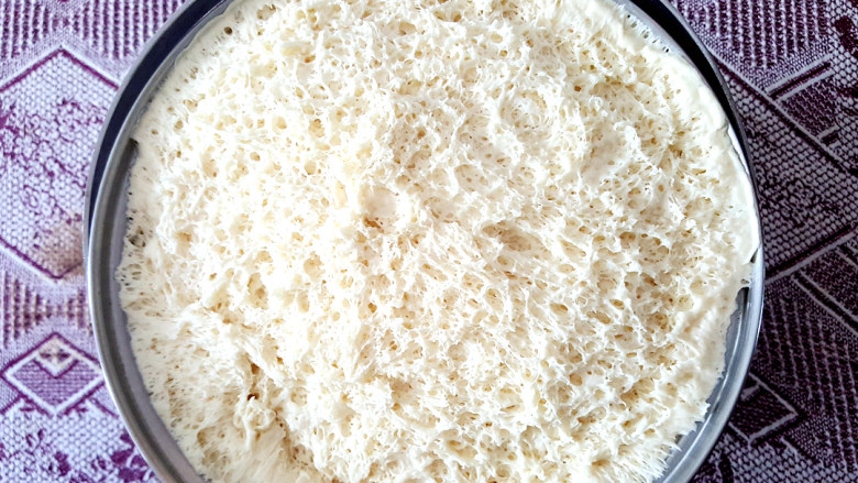 8. 待面粉发酵完毕,呈蜂窝状,取出。