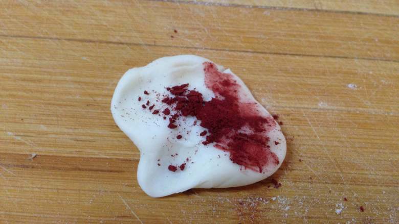 25. 把它们分别底部沾水组装到面皮上,红色花心部分用牙签戳几个小坑作为花心