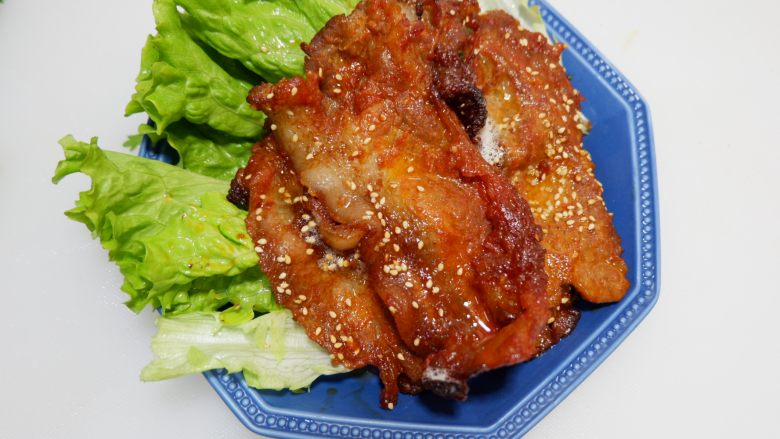 12. 烤7.8分钟的时候,观察一下边缘微微翘起。将五花肉取出。