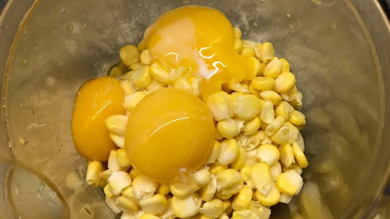 4. 玉米放入料理机,加入蛋黄喝牛奶将食材打成细腻的泥