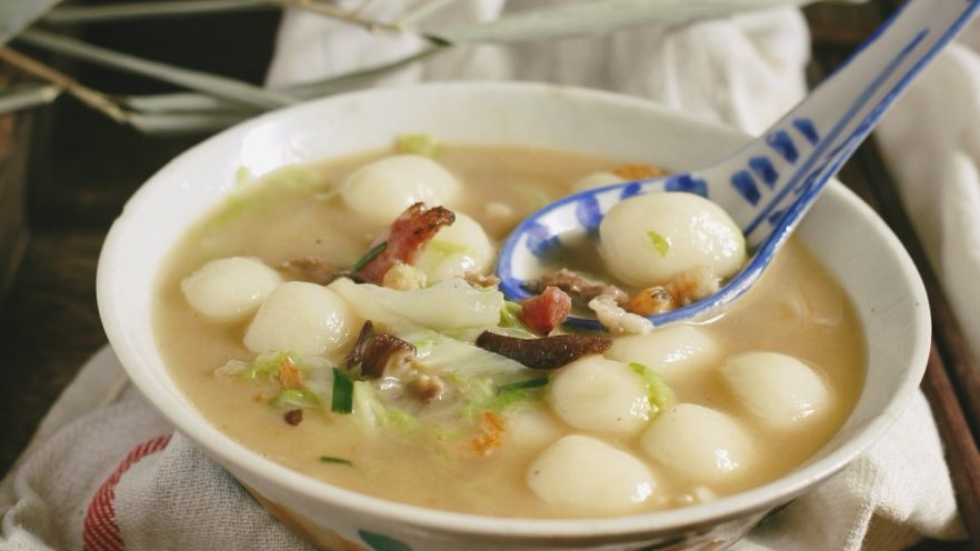 咸汤圆是客家人常做的,尤其是嫁女前夜必须要吃的一道点心,象征团圆美满。