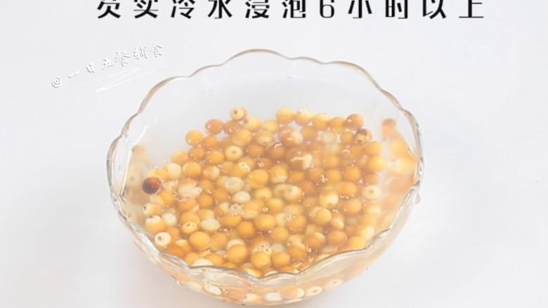2. 芡实冷水浸泡6小时以上。 >>泡一夜,早上煮了吃刚刚好,据说早上吃效果也比较好,一天都会感觉比较舒服。