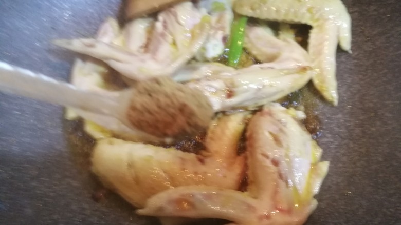 这道菜要飞了,鸡的小翅膀翅中,和土豆放着一起先炒后炖收汤汁。饱口福,下饭的一道菜。