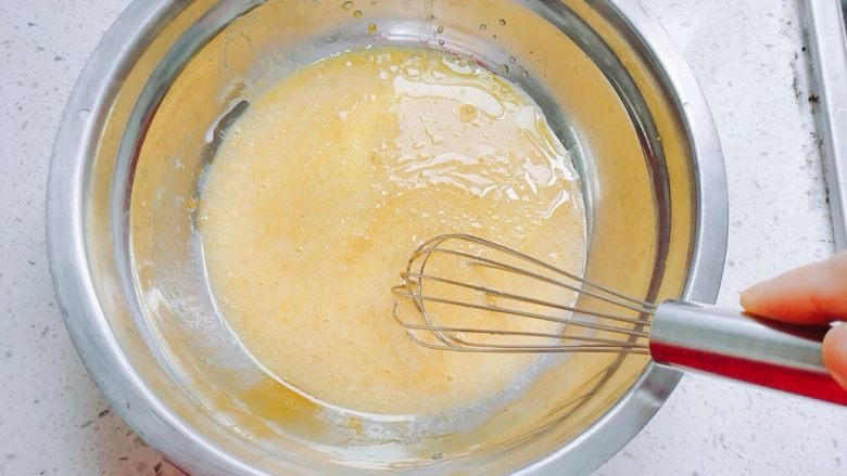 6. 用手动打蛋器搅拌均匀,到完全融合。