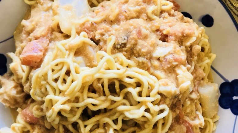 2. 和闺蜜一起吃的西红柿鸡蛋酱年糕面 材料 泡面一桶 (西红柿 鸡蛋炒酱)年糕