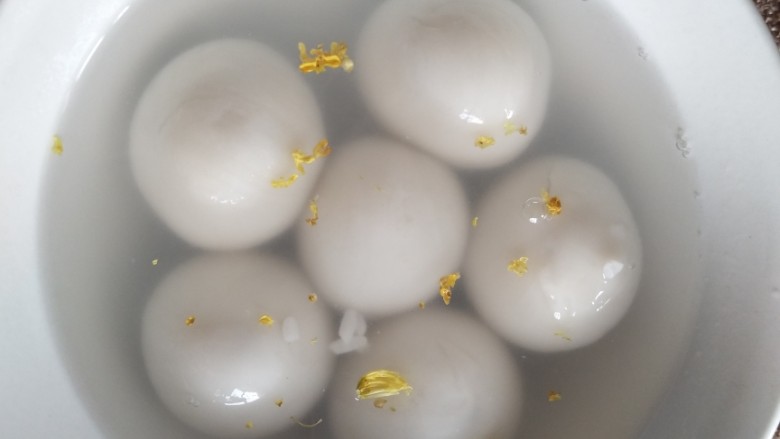 14. 再次开锅,就可以捞出了,撒上桂花,已经满屋飘香了。