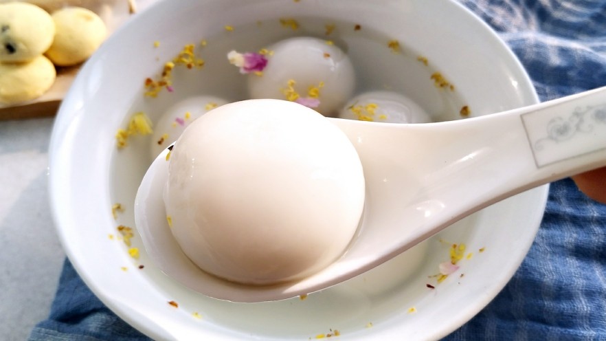 15. 再放入玫瑰花点缀,一碗经典酒酿汤圆做好了。