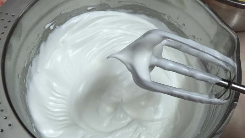 7. 蛋清中加入几滴白醋,分3次加入细砂糖,