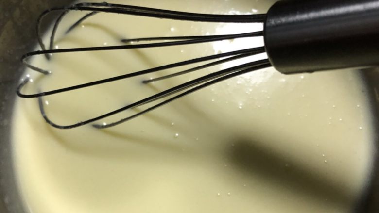 3. 用蛋抽搅拌至糖溶解,成炼乳状